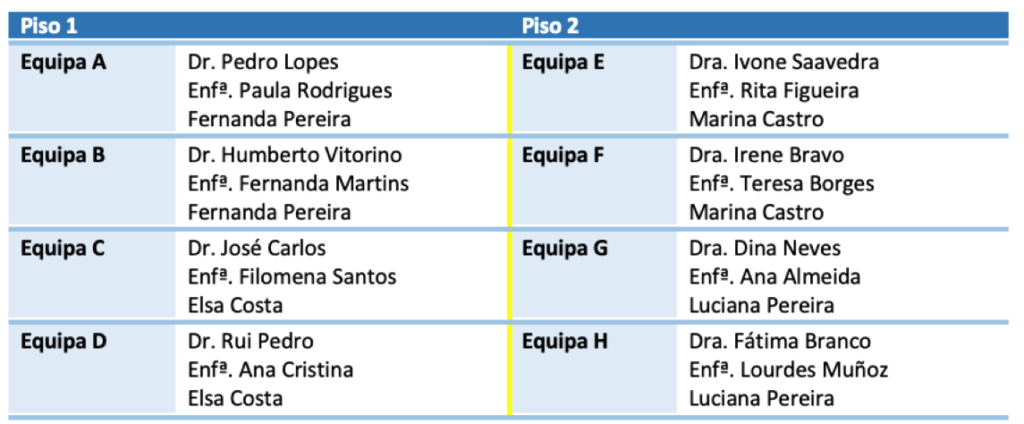 A equipa é constituída por 8 médicos, 8 enfermeiras, 6 assistentes técnicas.